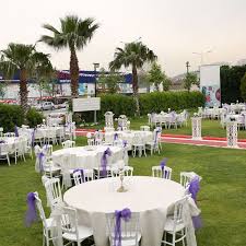 Yenimahalle kır düğün salonlarının zarif ve canlı bir dekorasyona sahip olanlarından biri olarak kapılarımızı açıyoruz. Daha çok çiftlerimizin zevkleri doğrultusunda oluşan alan tasarımımız genellikle romantik tarza uygun olacak biçimde şekilleniyor. Beyaz tiffany sandalyelerimiz ve beyaz örtülü yuvarlak masalarımız, aynı renkte tüllerle bütünleşmiş bir görünüme kavuşturuluyor. Masalarımızı çiçek demetleriyle, giriş yolunu renkli gelin yolu aksesuarlarıyla süslüyoruz.